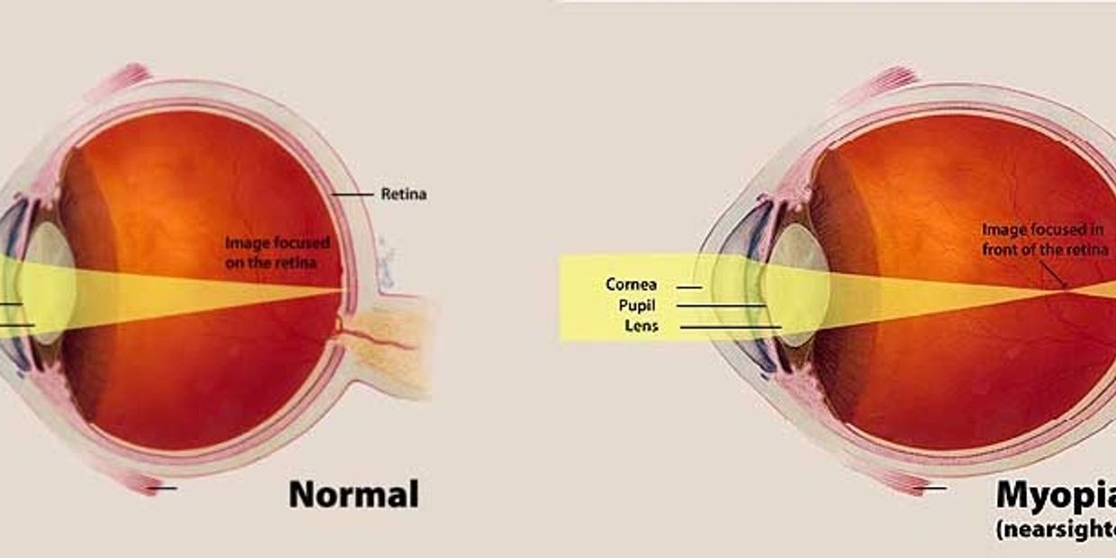 Myopia is a condition known when the eyeball grows elongated from front to back. This causes images to be focused in front of the retina instead of focused on the retina. Myopia is also known as nearsightedness, having good near vision but poor distance vision. People with undiagnosed myopia have vision related headaches due to excessive eyestrain from trying to see objects in the distance.